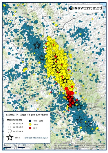 Da questa mattina, 18 gennaio, l’Istituto Nazionale di Geofisica e Vulcanologia (INGV) ha localizzato oltre 100 eventi sismici di magnitudo maggiore di 2.0 tra le province dell’Aquila (Montereale, Pizzoli, Capitignano, Campotosto, Cagnano Amiterno) e Rieti (Amatrice).