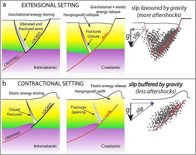 Lo studio spiega perché i terremoti dell’Appennino, che sono in buona parte di tipo estensionale, sono seguiti da un corteo di repliche così imponente e persistente nel tempo. Ad esempio, sono passati 15 mesi dall’inizio della sequenza sismica di Amatrice-Norcia e vi sono state circa 80.000 repliche. Questa chiave di lettura della sismicità può avere significative applicazioni nella gestione dell’emergenza post-evento, poiché in funzione del tipo di ambiente tettonico si può avere già una stima approssimativa della durata degli aftershock. Inoltre, conferma che l’energia accumulata nei secoli che precedono la rottura cosismica è diversa a seconda dell’ambiente tettonico, cioè principalmente gravitazionale per quelli estensionali ed elastica per quelli compressivi.