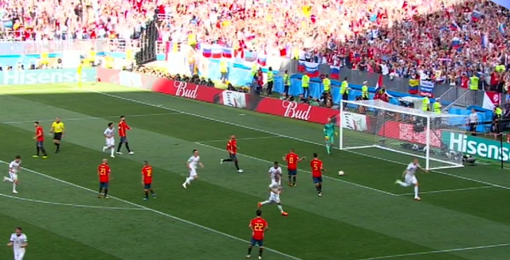 Spagna-Russia – Risultato finale – Vittoria della Russia ai rigori sulla Spagna, incapace quest’ultima, di operare un gioco interessante, come ci hanno abituati i campioni del Mondo del 2010. La Russia resiste e con i penalty è il portiere russo a fare la differenza, parando due rigori e mandando storicamente ai quarti i padroni di casa (3-4). Spagna eliminata.
