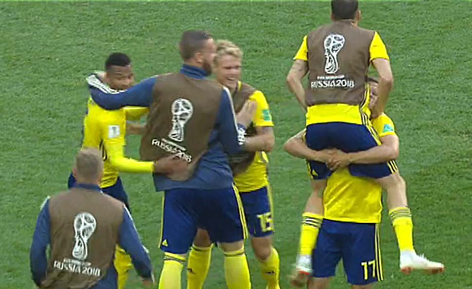 Aggiornamento FINALE Svezia-Svizzera: triplice fischio dell’arbitro che sancisce la vittoria della Svezia sulla Svizzera, una partita comunque avara di emozioni, risolta dal gol fortunato di Forsberg al 66′, grazie alla deviazione nella propria porta da parte di un difensore elvetico. Nel finale l’arbitro assegna un rigore alla Svezia, ma il Var dice che il fallo è fuori area, quindi si deve battere una punizione a tempo scaduto che non cambia il risultato. Svezia ai quarti.
